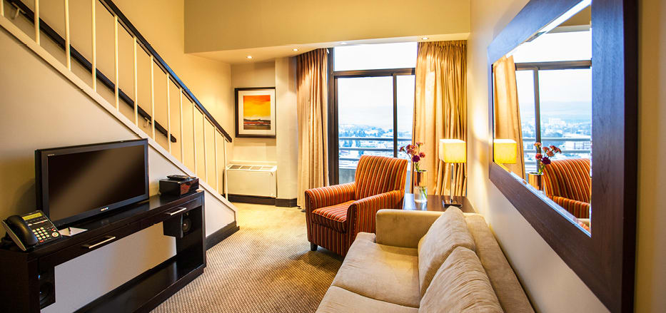 Enjoy the contemporary style of one of our Avani Suite. Get extra privacy in this space, with a bathroom and lounge area downstairs and upstairs bedroom for a great night’s sleep.